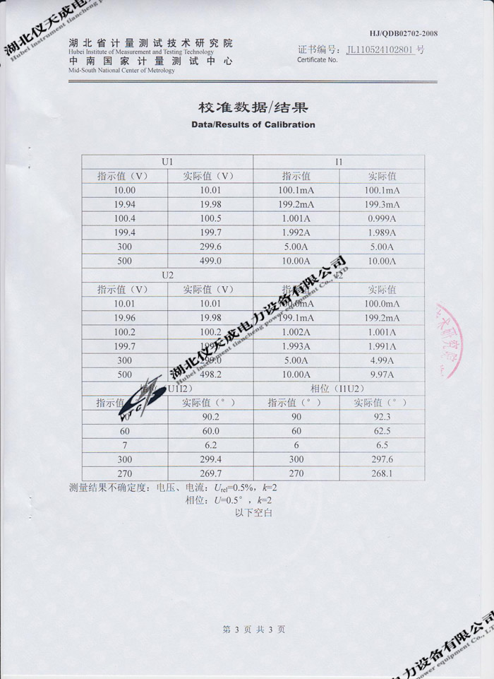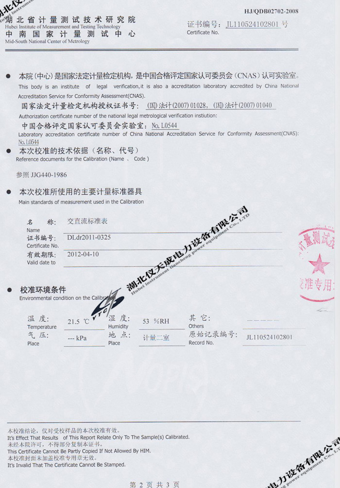 YTC2220數(shù)字雙鉗相位伏安表的資質(zhì)證書